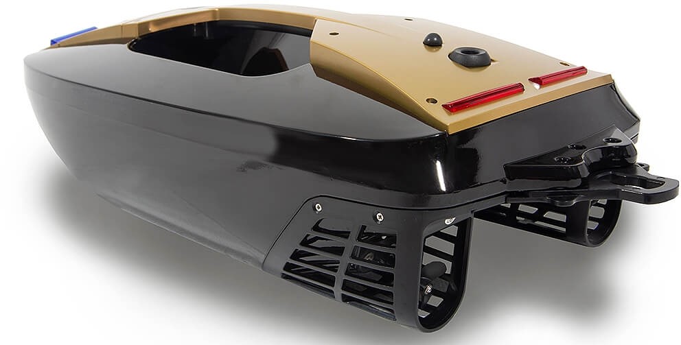 Das Boot verfügt über eine Ladeschaufel, die für den Transport von Futter geeignet ist, sowie über eingebaute LED-Leuchten, die bei jedem Licht für Sicht auf dem Wasser sorgen.
