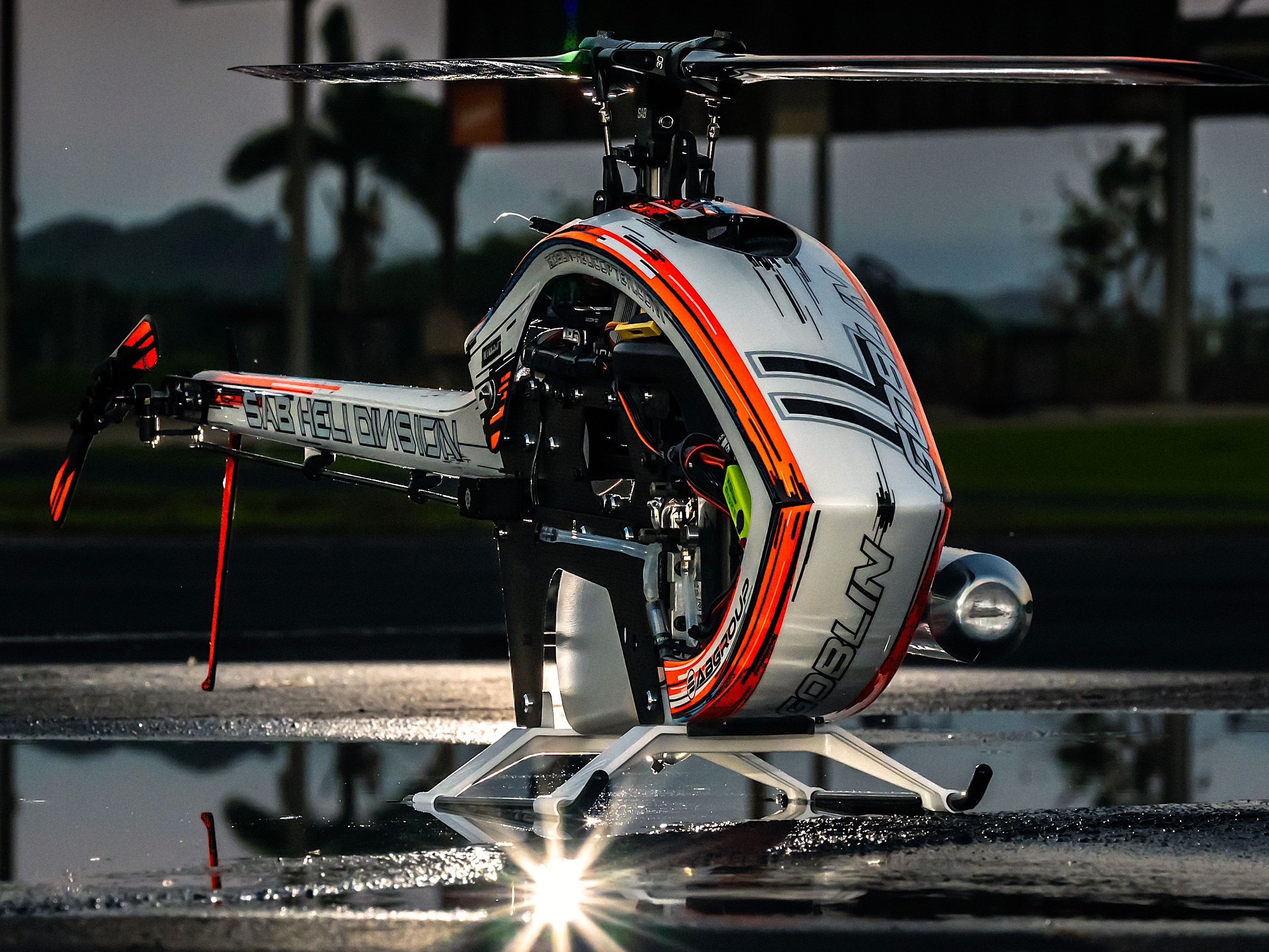 - Gewicht (Airframe): 1995g (ohne Rotorblätter, Motor, ESC, Servos, FBL)
