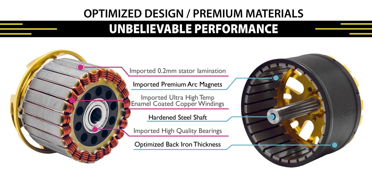 The Scorpion A - Series line of motors was designed to be the most optimal and premier choice of motor for your freestyle or UAV airplane. We have achieved incredible performance through incredible efficiency. By optimizing the magnets in the rotor, and using the best quality 0.2mm thickness silicon steel stator sheets, and single strand enamel coated copper wire windings rated above 200C+, the performance and efficiency results are unlike anything we have seen before! Combined with a robust design which has been tested extensively by our world class team pilots for longevity and reliability, we feel this motor checks and exceeds all measurable categories!