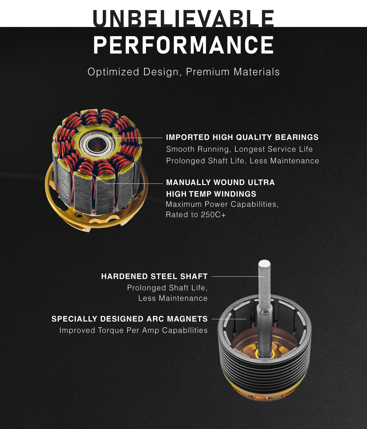 Der Motor ist wie ein Trecker, bietet das höchste Drehmoment in seiner Gewichtsklasse, bei effektiver Single Draht Wicklung, die mit dem neuen Blechschnitt den erhöhten Luftdurchsatz ermöglicht.