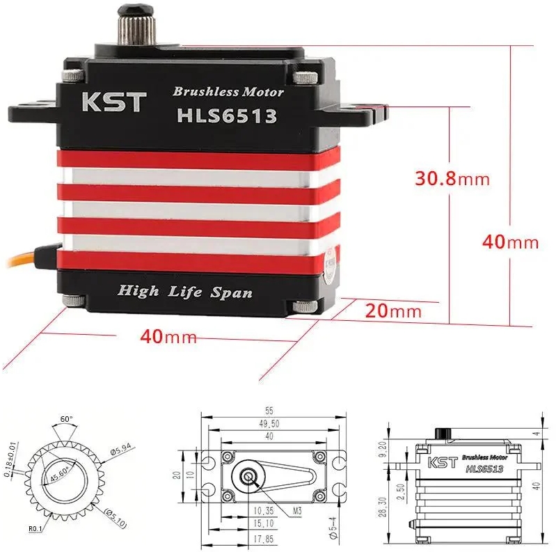HLS6513 HV Standard 4-poliger bürstenloser digitaler Metallgetriebe-6BB-Servo mit kontaktlosen Hall-Sensoren