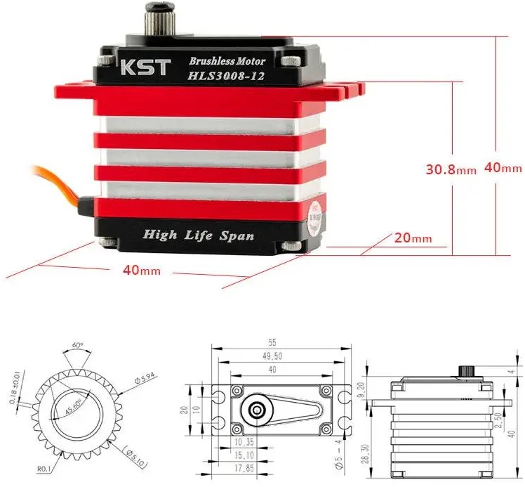 - HLS3008-12 Brushless Servo mit langer Lebensdauer