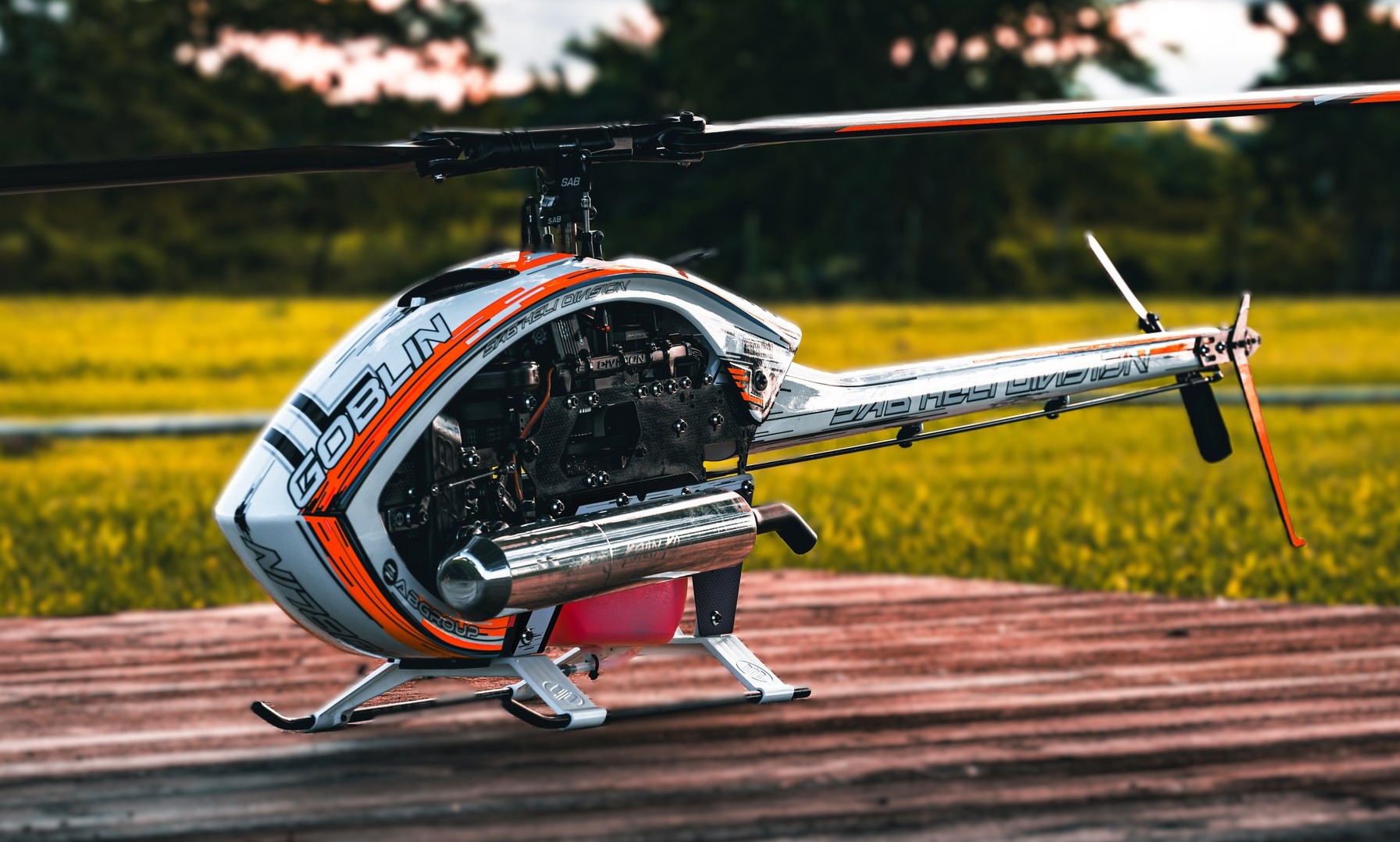 - Gewicht (Airframe): 1995g (ohne Rotorblätter, Motor, ESC, Servos, FBL)