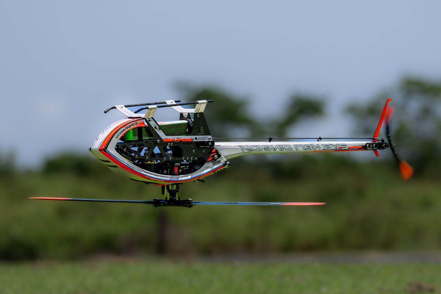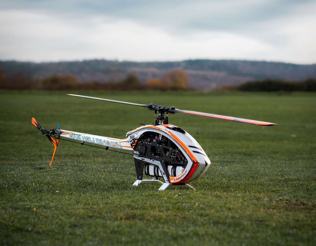 - Gewicht (Airframe): 1995g (ohne Rotorblätter, Motor, ESC, Servos, FBL)