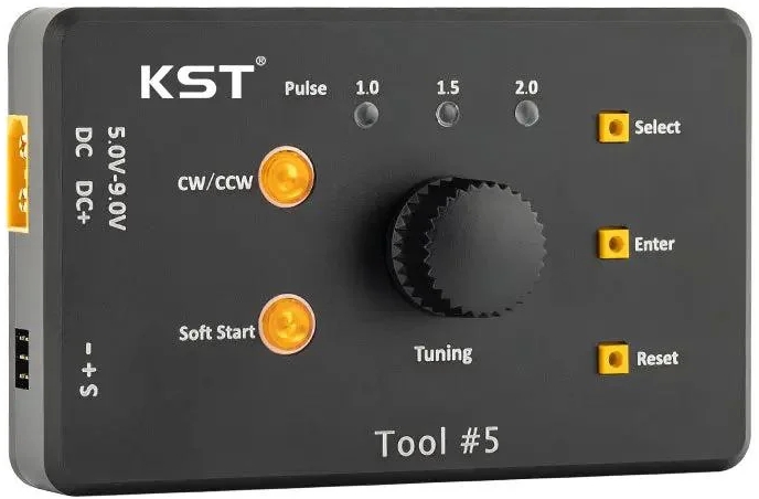 The KST Servo Programming Tool Card #5 is used for programming KST servos without the need for a computer.